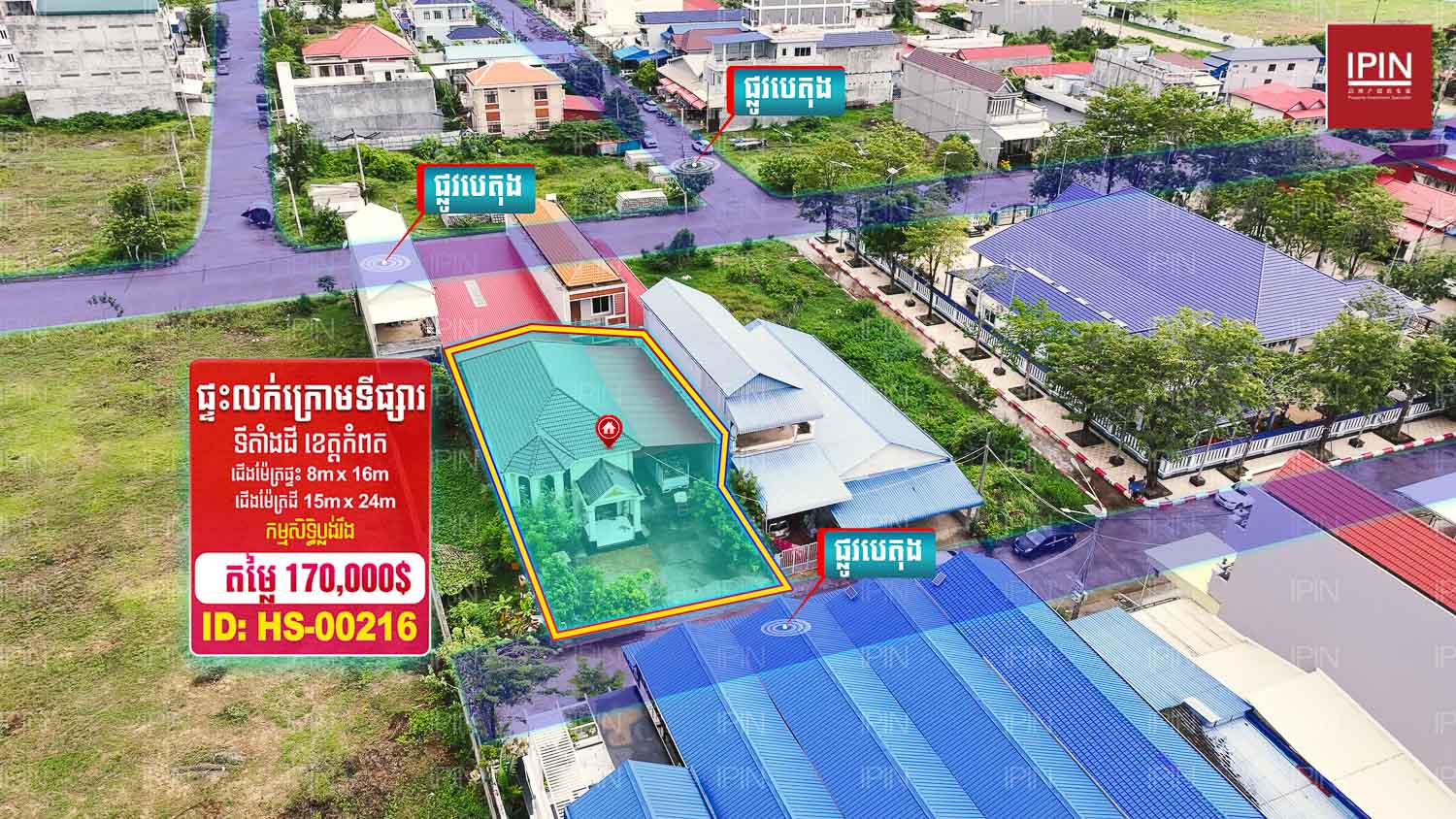 ផ្ទះសម្រាប់លក់ តម្លៃក្រោមទីផ្សារ 170,000​​ដុល្លារ ស្ថិតនៅ​ក្នុងក្រុងកំពត ខេត្ដកំពត