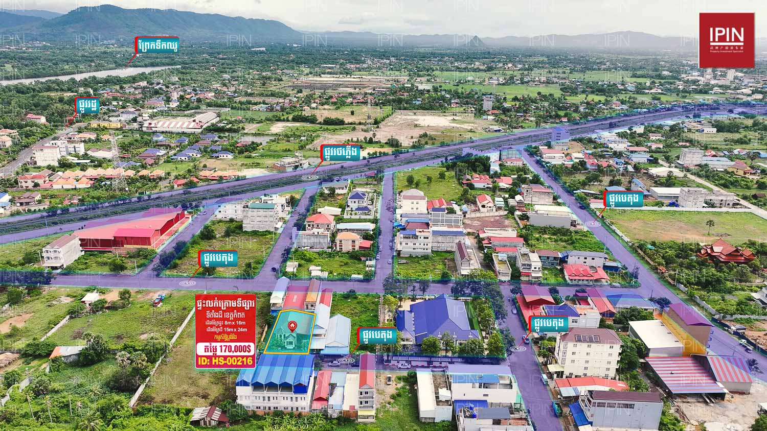 ទំហំដីទទឹងស្មើនឹង 15ម៉ែត្រ បណ្តោយស្មើនឹង 24ម៉ែត្រ និងផ្ទះមានទំហំទទឹងស្មើនឹង 8ម៉ែត្រ បណ្តោយស្មើនឹង 16ម៉ែត្រ សល់មុខផ្ទះ 8ម៉ែត្រ សល់ជំហៀង 7ម៉ែត្រ​ ផ្ទះមានបន្ទប់គេង4 បន្ទប់ទឹក5 មានផ្ទះបាយ1 មានកម្មសិទ្ធិប្លង់រឹងស្របច្បាប់100%។
