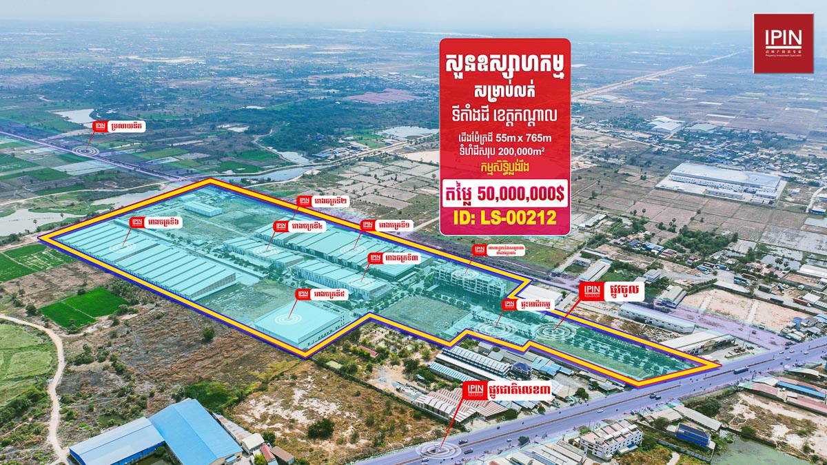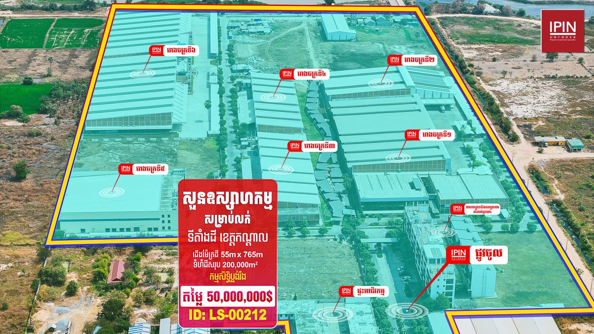 ដីមានទំហំទទឹងស្មើនឹង55ម៉ែត្រ បណ្តោយស្មើនឹង765ម៉ែត្រ និងមានទំហំសរុប200,000ម៉ែត្រការរ៉េ មានកម្មសិទ្ធិប្លង់រឹងស្របច្បាប់100%។ សួនឧស្សាហកម្មជាប់ផ្លូវជាតិលេខ3 ម្ចាស់ត្រូវការលក់ មានទីតាំងស្ថិតនៅ ស្រុកកណ្ដាលស្ទឹង ខេត្តកណ្ដាល។