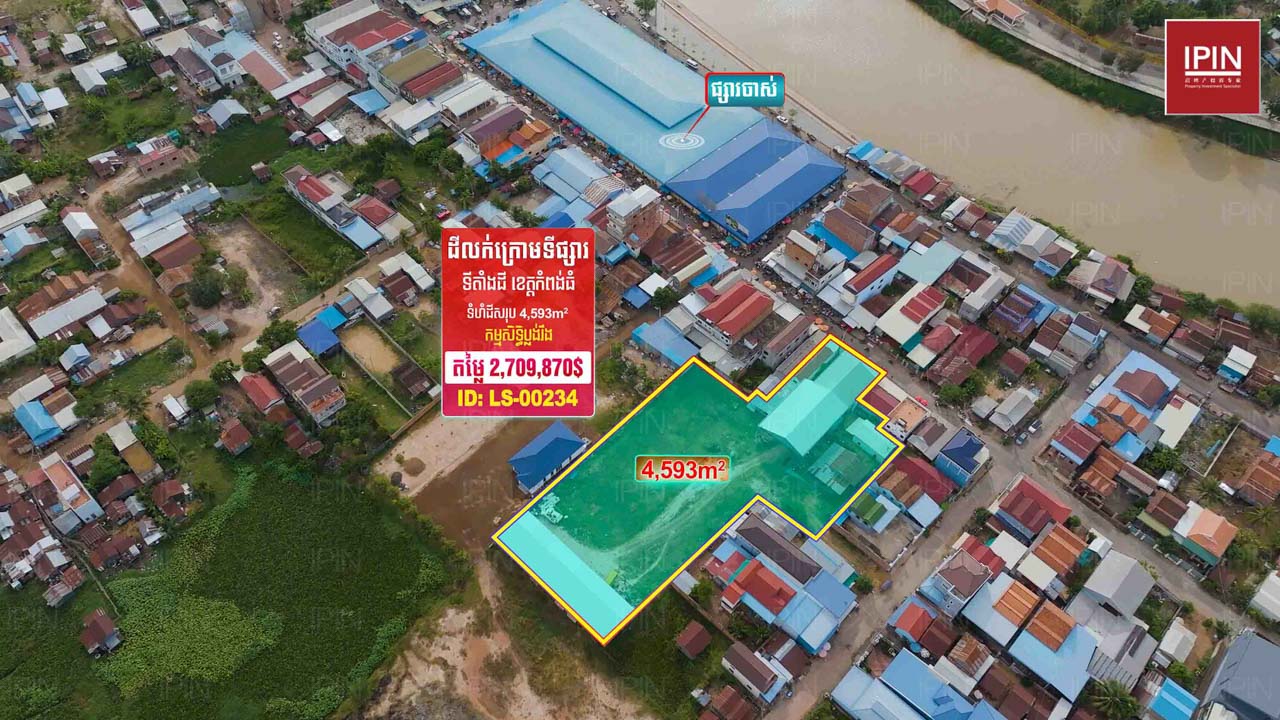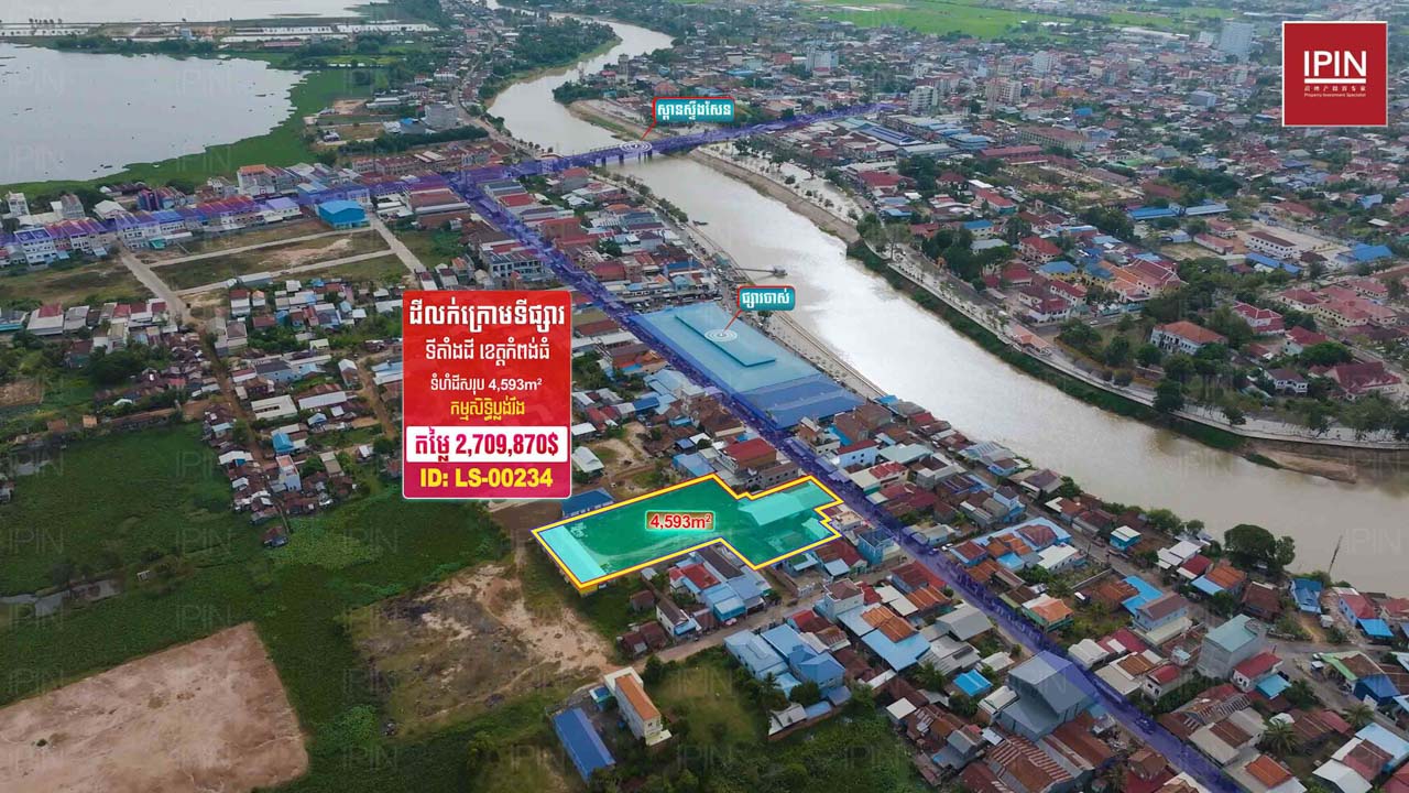 ដីសម្រាប់លក់តម្លៃក្រោមទីផ្សារ 2,709,870ដុល្លារ​ ស្ថិតនៅស្រុកស្ទឹងសែន ខេត្តកំពង់ធំ