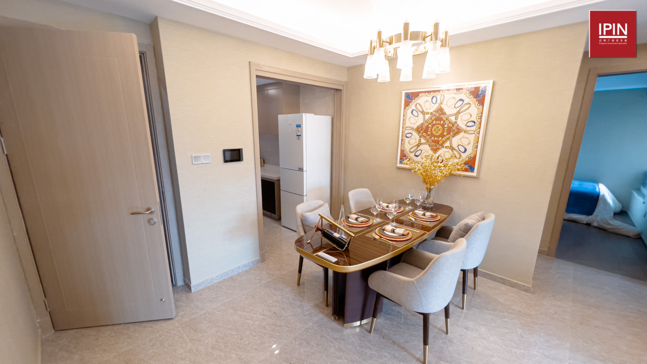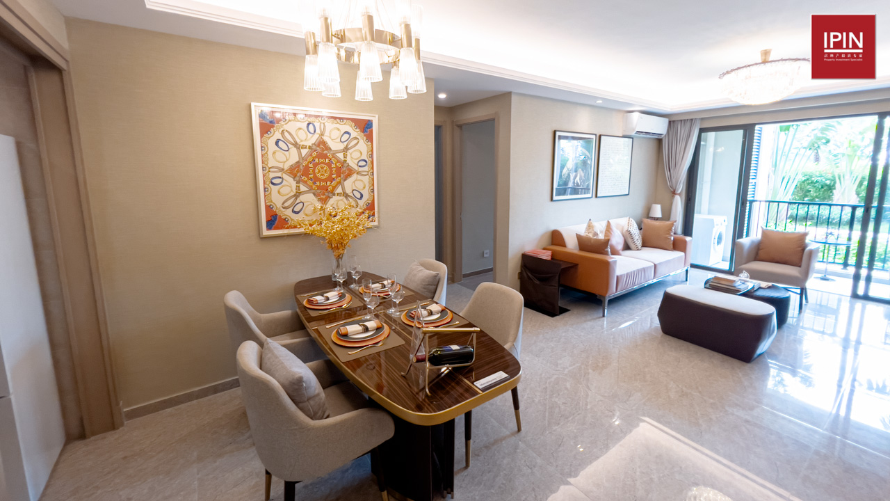 បន្ទប់គេងបី នៅគម្រោងR&F ដែលមានទំហំចាប់ពី 115.22 ម៉ែត្រការ៉េ ដល់ 129.98 ម៉ែត្រការ៉េ។