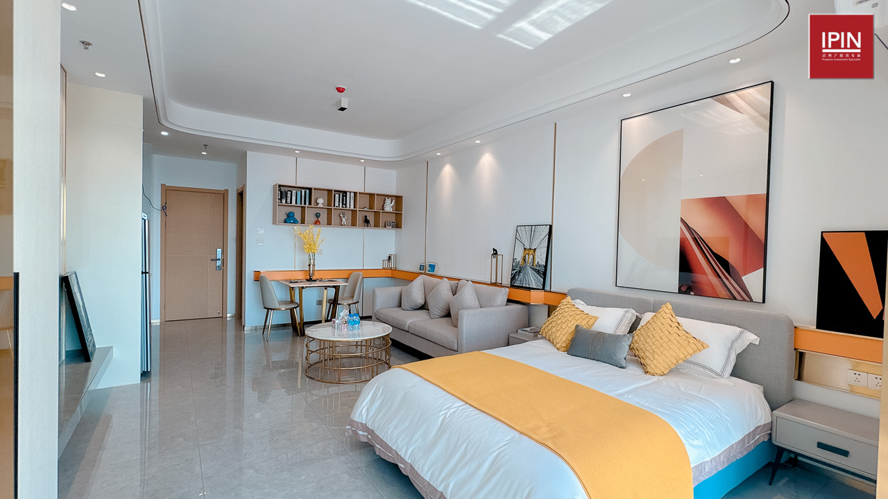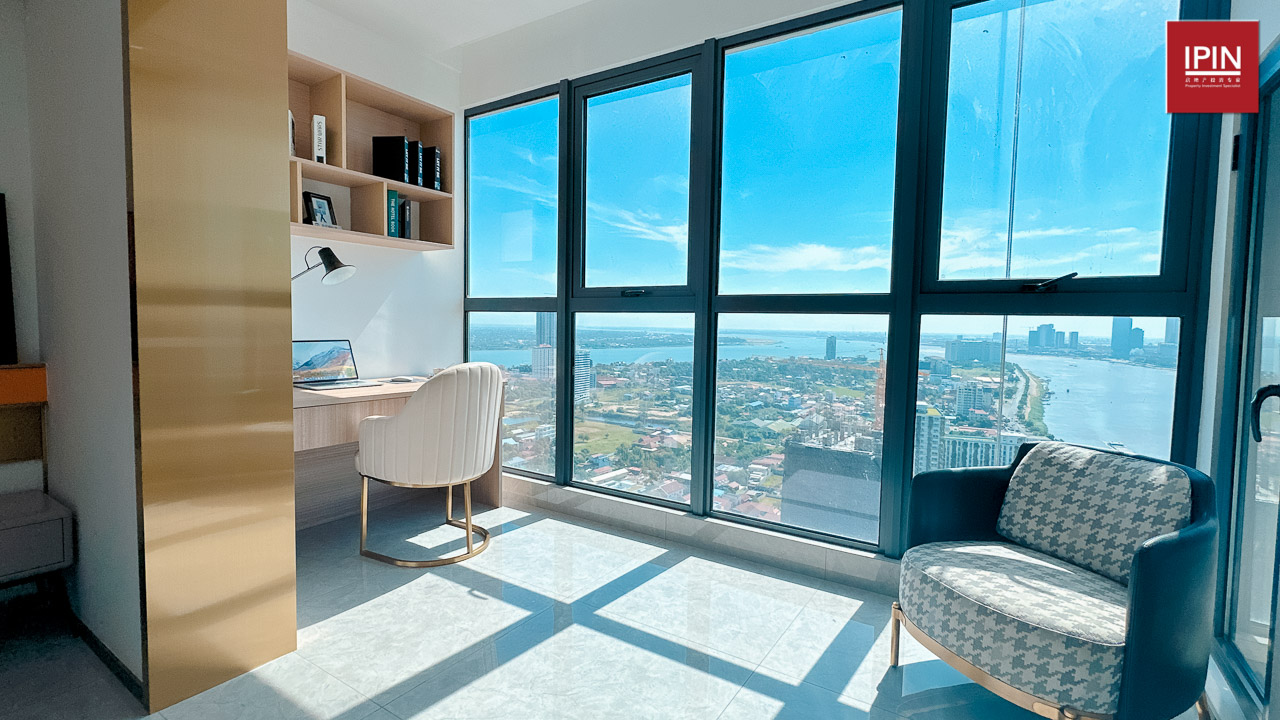 យូនីតស្ទូឌីយូមានទំហំចាប់ពី 55.82ម៉ែត្រការ៉េ រហូតដល់ 62.67ម៉ែត្រការ៉េ ជាមួយនឹងផ្ទៃឯកជន មានគ្រែ1 កន្លែងទទួលភ្ញៀវ1 បន្ទប់ទឹក1 ចង្រ្កាន្តបាយ1 និងយ៉អង្គុយលេងគយគន់ទេសភាពក្រុងភ្នំពេញនិងទន្លេ។