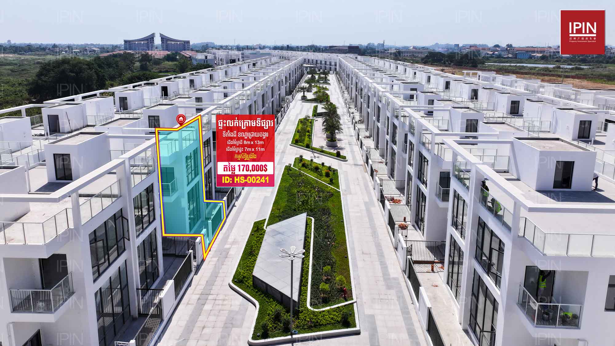 គម្រោងមានផ្ទៃដីសរុប 60 ហិចតា នៅដំណាក់កាលទីមួយនេះសាងសង់លើផ្ទៃដី 6 ហិចតា សរុបជាង317 វីឡាមានវីឡាភ្លោះ និងវីឡាទោល ការសាងសង់ផ្ដោតលើការរស់នៅក្នុងបរិស្ថានបៃតងដែលនឹងមានសួនរហូតដល់45%។