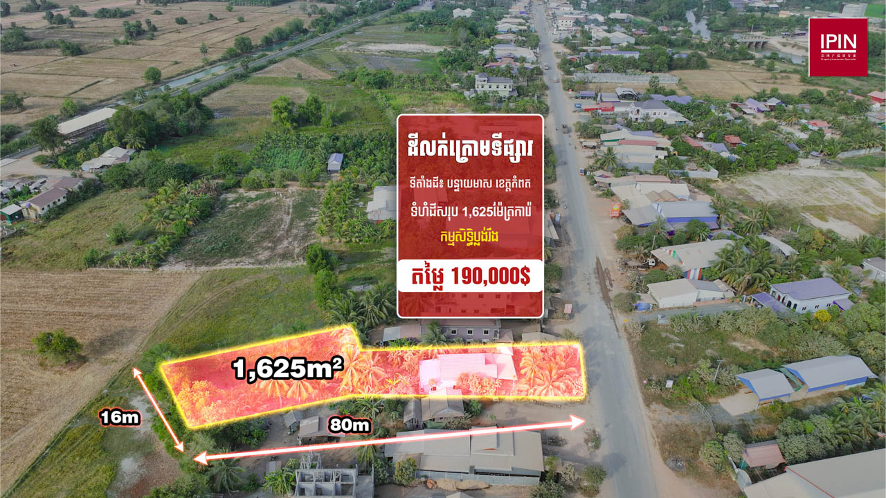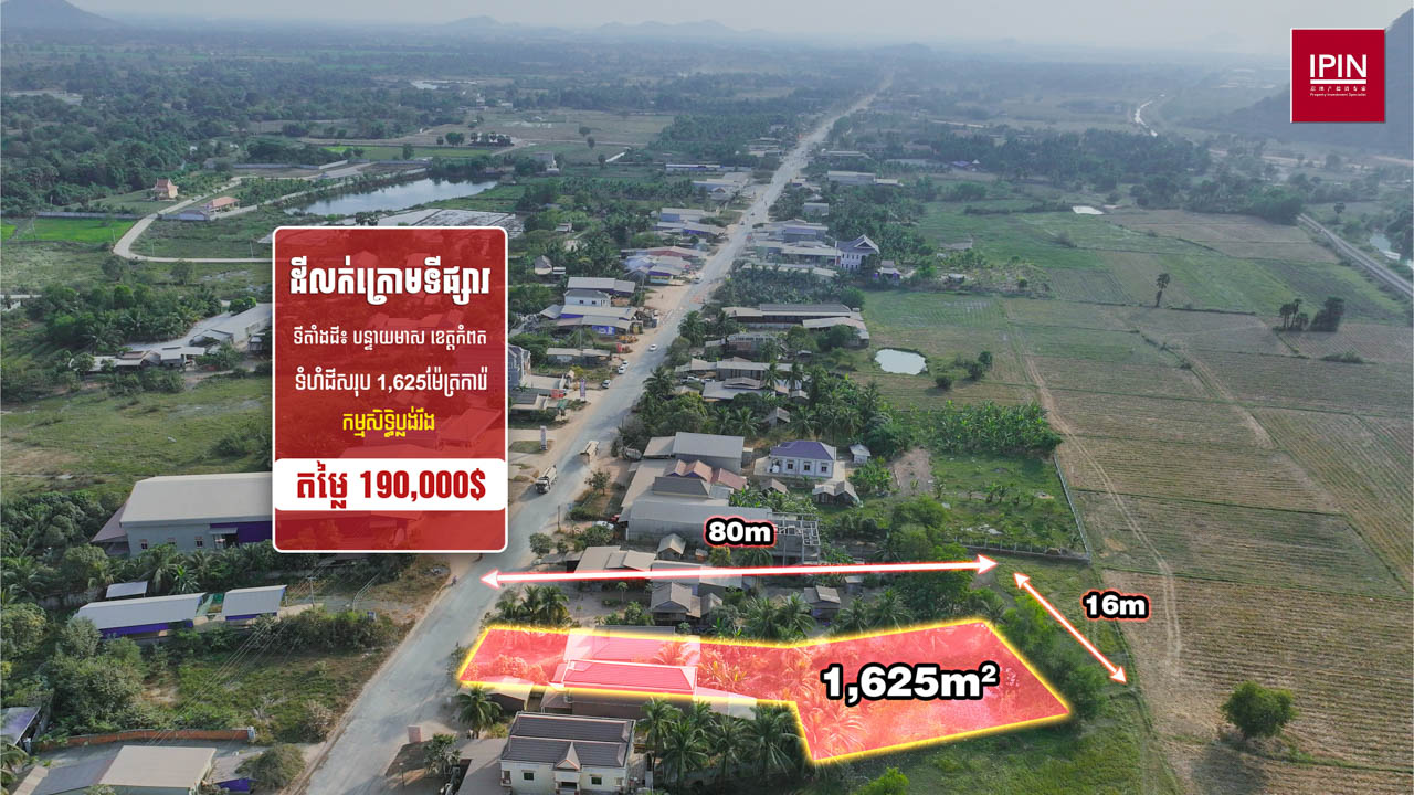 ឱកាសចំណេញខ្លាំងសម្រាប់អតិថិជន ដែលកំពុងស្វែងរកដីលំនៅឋាន ដែលមានផ្ទះស្រាប់ នៅក្បែរផ្សារកំពង់ត្រាចខេត្តកំពត ជាតំបន់មានសក្កនុពល ក្បែរតំបន់ទេសចរណ៍ធម្មជាតិ មានភ្នំ សមុទ្រ អាចបើកជាភោជណីយដ្ឋាន ហាងកាហ្វេ ឬម៉ាតផ្សេងៗ។