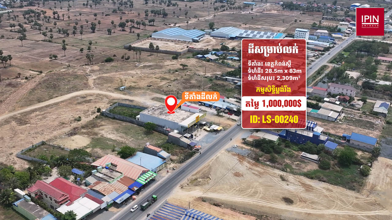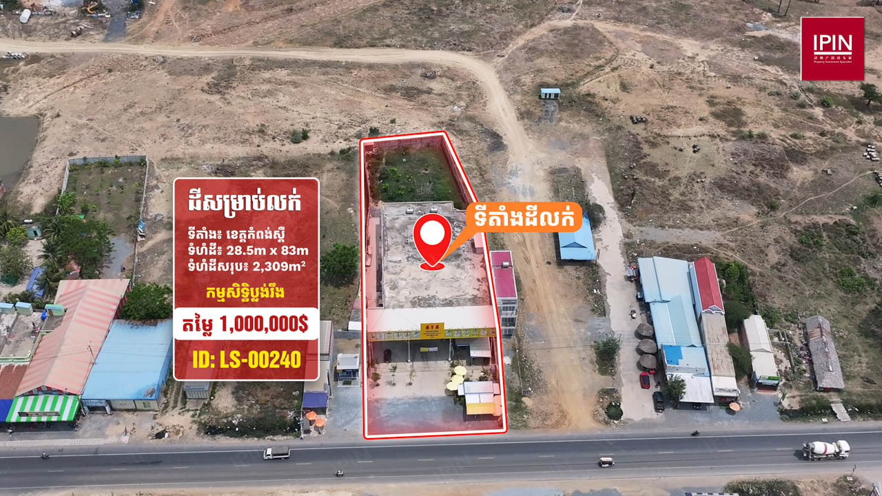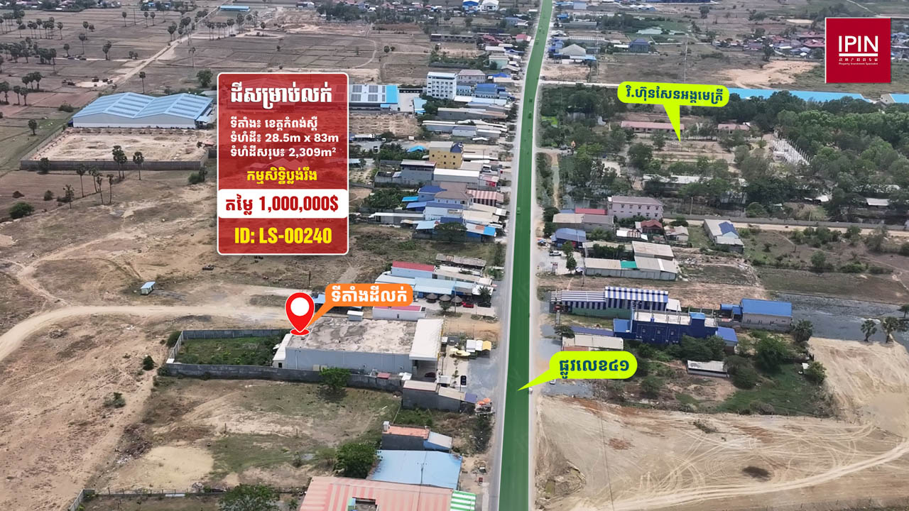 ដីមានទំហំទទឹងស្មើនឹង 28.5ម៉ែត្រ បណ្តោយស្មើនឹង 83ម៉ែត្រ និងទំហំសរុបស្មើនឹង 2,309ម៉ែត្រការ៉េ មានកម្មសិទ្ធិប្លង់រឹង។ សំណង់មានទំហំទទឹងស្មើនឹង 26.5ម៉ែត្រ បណ្តោយស្មើនឹង 41ម៉ែត្រ ដែលមានចំណូលស្រាប់ពីការជួល3,500ដុល្លារ/ខែ ដែលមានទីតាំងស្ថិតនៅភូមិព្រៃពង្រ ឃុំរកាកោះ ស្រុកគងពិសី ខេត្តកំពង់ស្ពឺ។ ដីធំទូលាយជាប់ផ្លូវជាតិលេខ41 ធ្វើដំណើរត្រឹមតែ 2នាទី ពីផ្សារអង្គមេត្រី និងផ្លូវលេខ130 និងធ្វើដំណើរត្រឹមតែ 1នាទី ពីទ្យាល័យ ហ៊ុន សែន អង្គមេត្រី ដែលមានមនុស្សរស់នៅច្រើនកោះករ នឹងអាចសាងសង់ជាលំនៅដ្ឋាន ប្រកបអាជីវកម្មដូចជា៖ បើកជាហាងការហ្វេ អាហារដ្ឋាន បើកជាការ៉ាស់សាំង ឬធ្វើជាអ្វីផ្សេងៗ ទៅតាមតម្រូវការរបស់អតិថិជន។